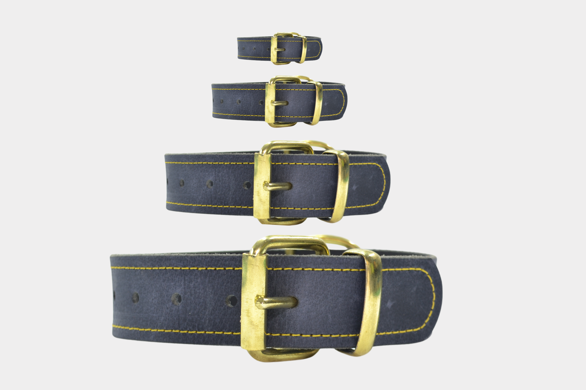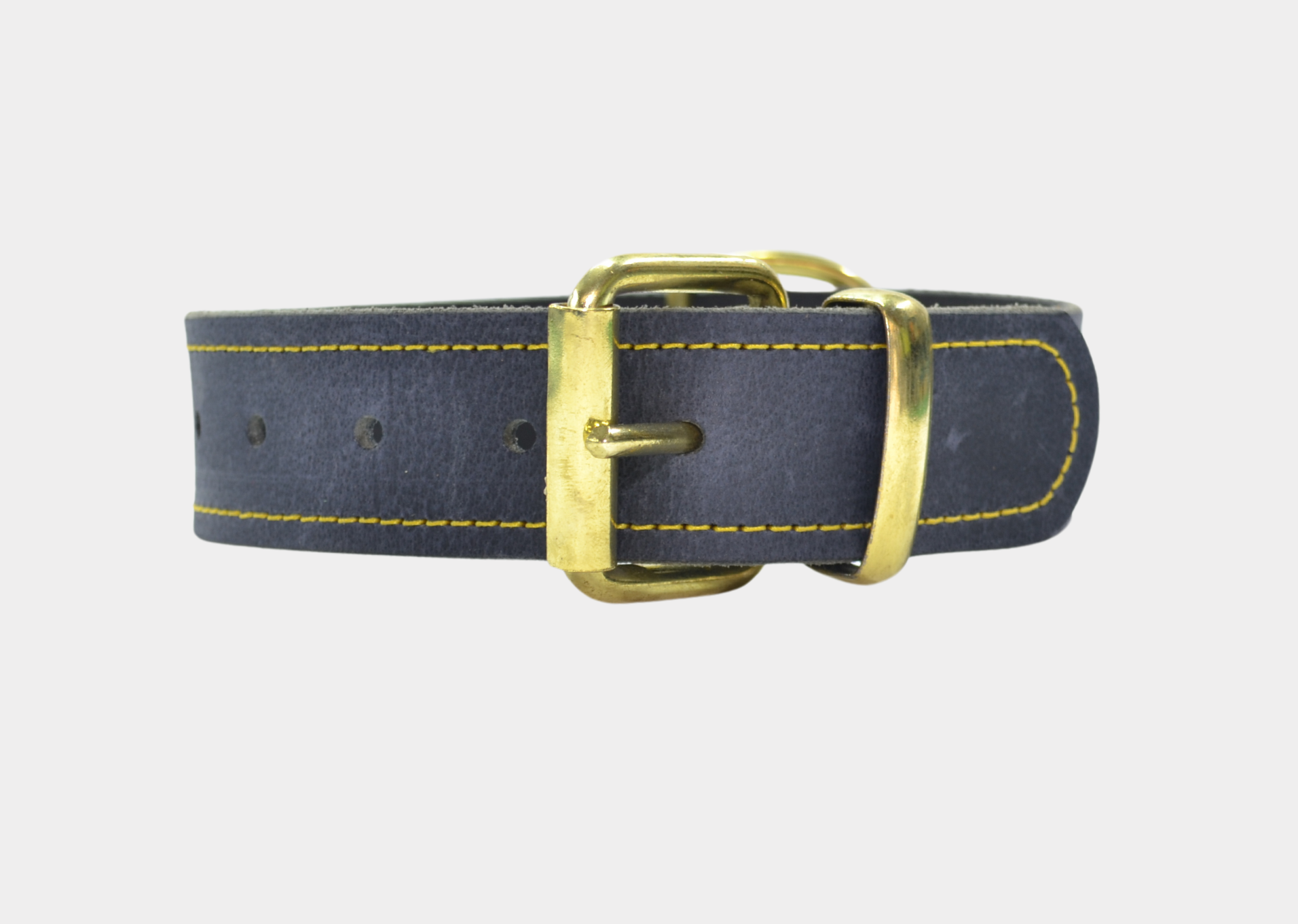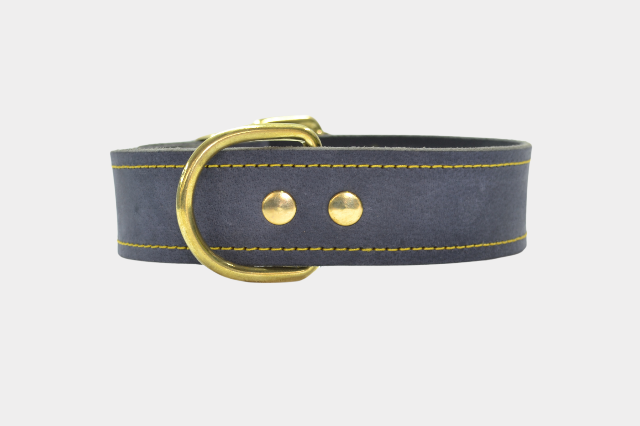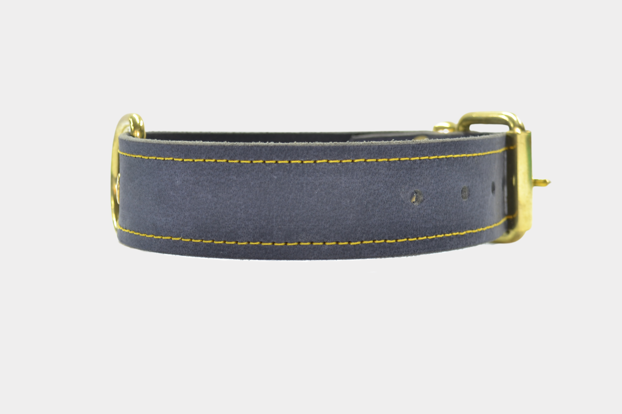 De halsband is gemaakt van buffelleer met een gefreesde, wasachtige pull-up afwerking in een substantie van 3,2-3,5 mm en is voorzien van een stevig gesp, passant en d-ring in een goud kleur. Verder is de halsband gestikt.